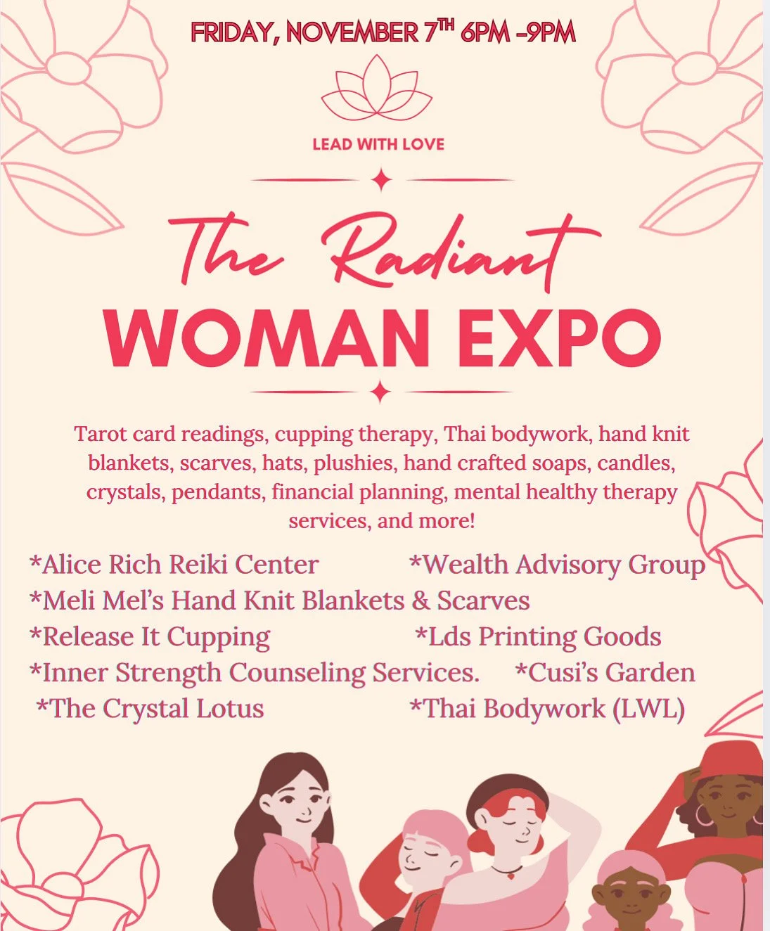 Join me at the Radiant Woman Wellness Expo at Lead With Love in Iselin, NJ, on November 7th for an evening of self-care and connection. Explore small businesses offering tarot readings, cupping therapy, Thai bodywork, and more — a perfect night to unwind, recharge, and celebrate women’s wellness.